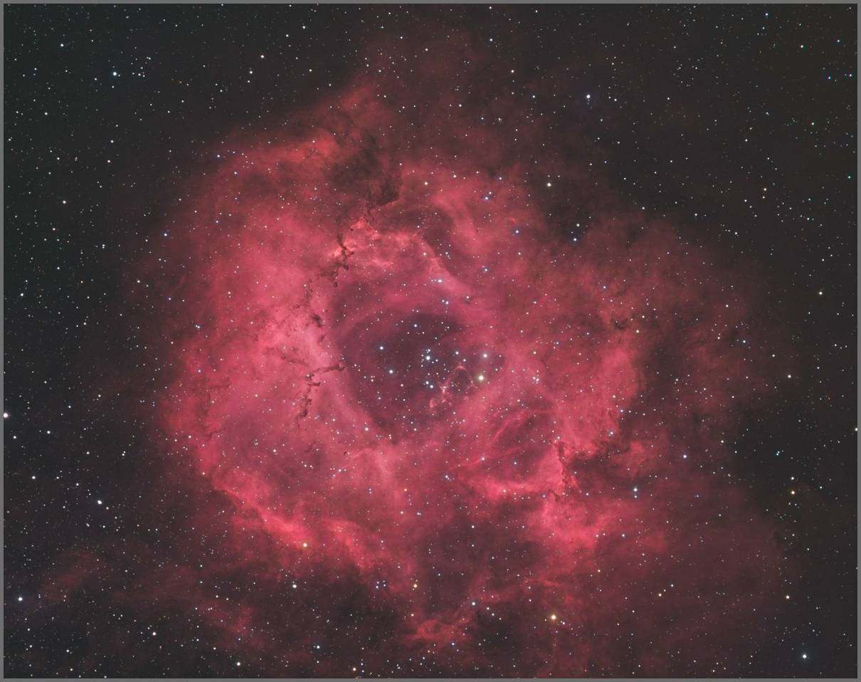 Pridávam svoj pokus o jednoduché spracovanie. Kvalitné dáta, dobre sa s tým robí. Žiadne extra čarovanie, dokonca ani len nejaký náznak potlačenia šumu. Ha som nemixoval do červeného kanála, aby v hmlovine ostali zachované jemné odtiene fialkovej tak, ako vyšli z RGB kompozitu. Saturáciu som aplikoval len jemne. Dúfam, že sa nikde nestratila kresba v detailoch. Pri zbežnom porovnaní s Ha som žiadnu fatálnu újmu nezbadal.