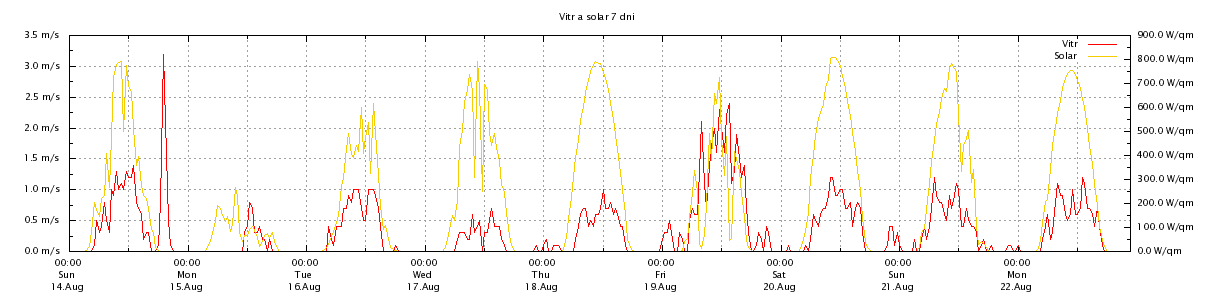 Konečně jsem se dostal k vyhodnocení dat ze své meteostanice Davis. Zajímavá je závislost velikosti solárního záření a rychlosti větru.