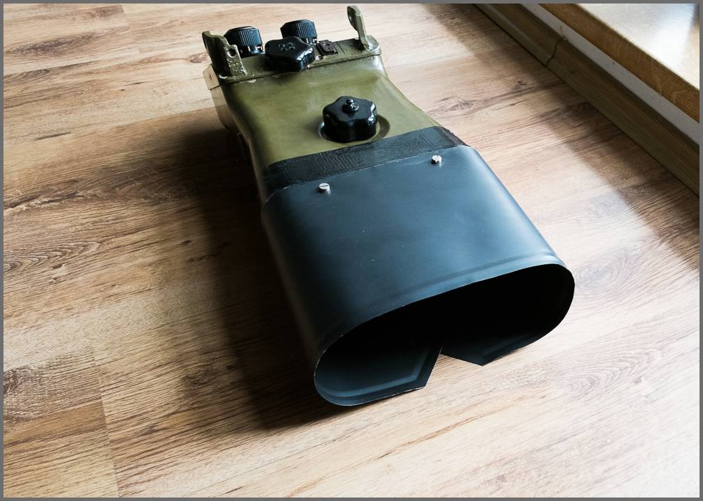 Tak jsem dodělal tu plechovou rosnici, ještě instalace filtrů, finální seřízení optiky, pak původní pískovou barvu a hotovo. Nakonec ty držáky původní gumové očnice řezat nebudu, protáhnu tam tyčku a využiju jako přenosné držadlo na dalekohled.