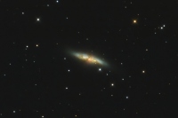 Viem, že to má množstvo chýb, lebo som to celé robil len veľmi na rýchlo keď som zistil že seeing je naprd a že je celkom tma. Takže tvar hviezd kazí zavadzajúci výťah, ešte stále nie presné ustavenie montáže a ku koncu vietor robil z hviezd tiež elipsy. Takisto by som druhý raz inak otočil chip, lebo sa mi takto nezmestila celá galaxia. (je to výrez z obrázku na výšku). No skúsenosti snáď časom prídu.