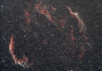 Takhle teda ještě na snímku zamakám. Gradienty jsem se snažil odstranit, na hvězdy jsem použil v PS Astronomy tools "make stars smaller" až se mi to zdálo moc. Psionovi z toho ty závoje ale hezky vylezly, i když za cenu, že už se vytrácí ta hvězdokupa. Zkusim na tom teda ještě zapracovat - díky za nakopnutí ;c)