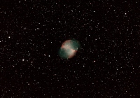 Taky přidávám jedem bicolor pokus o M27 s naprosto nevyváženým poměrem expozic (182 m Ha - B1x1 oproti 22 m OIII - B2x2). Je k neuvěření, že to málo OIII přeci jenom něco obarvilo...