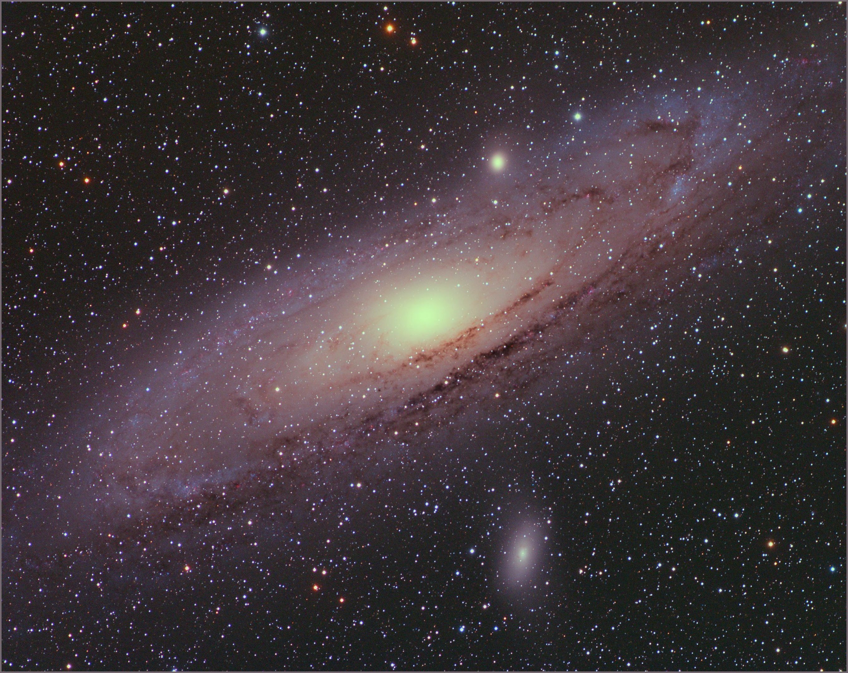Obdivuju tvoji náturu takhle hodně vysaturovat modrou. ostatní kanály celkem snesitelné. Jinak mi na fotce vadí jen to, že tam galaxie není celá, ale fotka by se asi leckomu z laiků na zdi moc líbila.