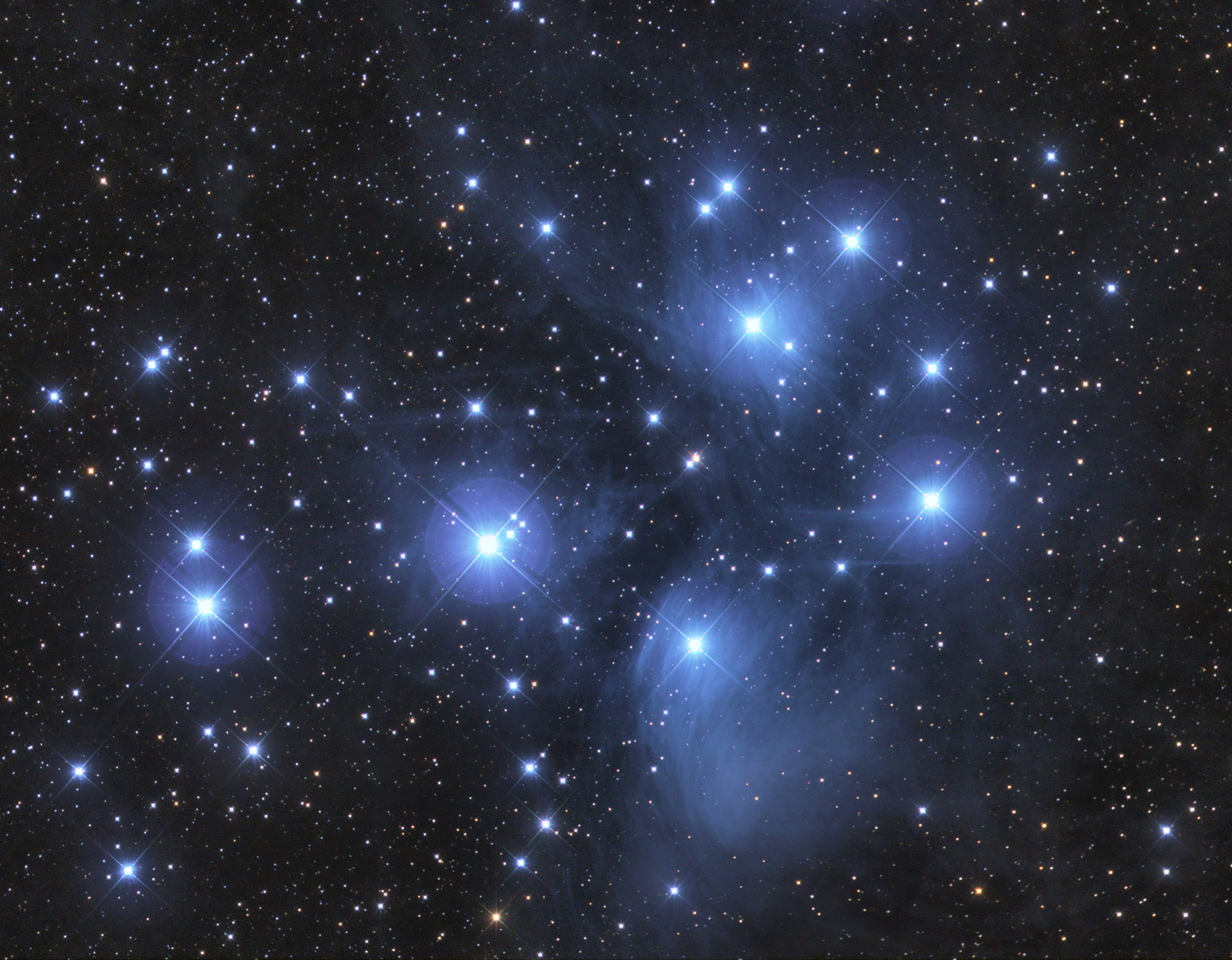 Šum byl, je a bude. Komu se nelíbí, nechť nechá slabé partie kde jsouJe tu ale horší problém, nejspíš s odstraněním gradientu. Atlas je 100% saturovaná bílá, zatímco směrem doprava hvězdám klesá jas. Electra už je dokonce jen 80% šedá! Je to na první pohled vidět i na mizerném TN displeji. Tvoje předchozí fotka tímhle netrpěla, neměla sice takový dosah, ale působila přirozeněji.