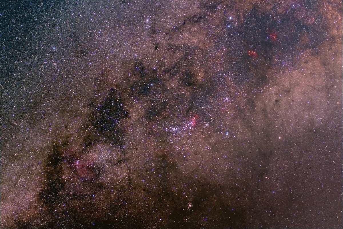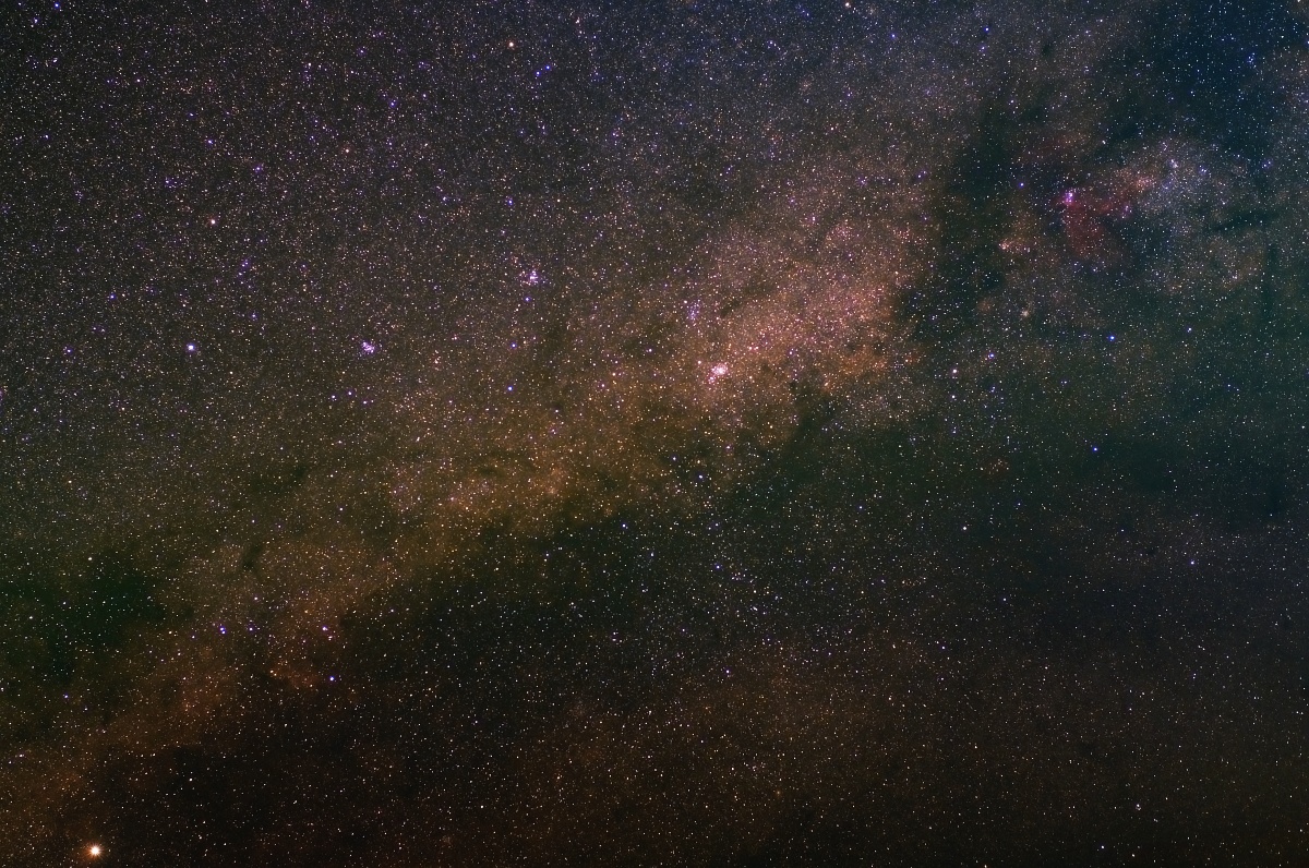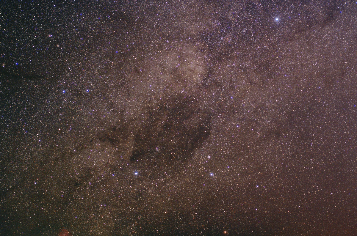 Exp. 2h, f/5,6, Pentax 6x7, objektiv Takumar 200mm f/4, film Kodak E200. Dvouhoodinová expozice měla vyzkoušet temnost mého pozorovacího místa. Film je skutečně docela světlý, ale možná kvůli husté Mléčné dráze v této oblasti. Barva pozadí je na filmu čistě modrá. Bohužel jsem snímek dělal předtím, než jsem zjistil, že se mi při převozu montáže uvolňuje polární hledáček.