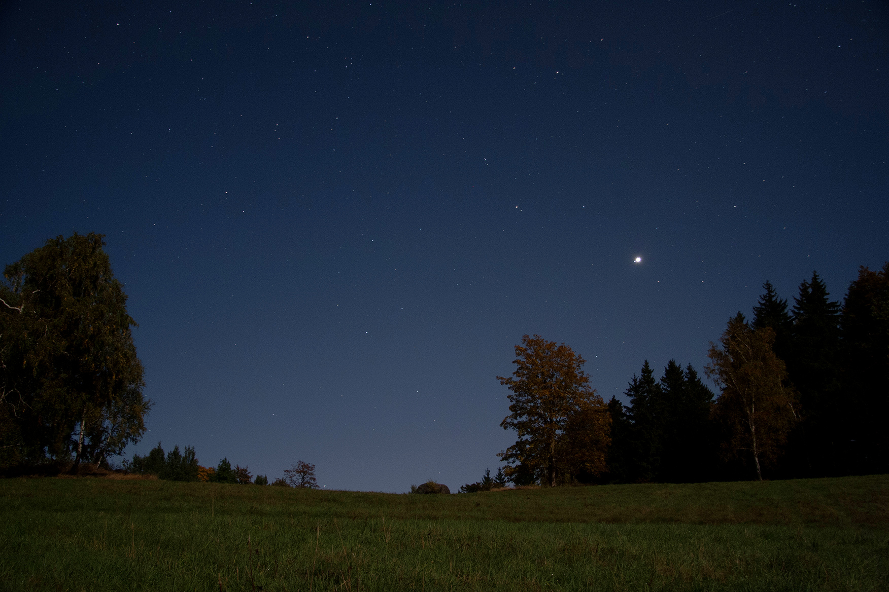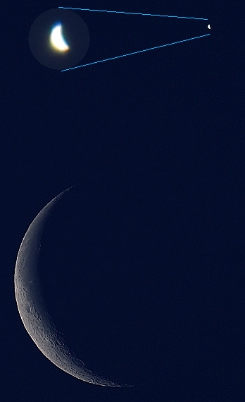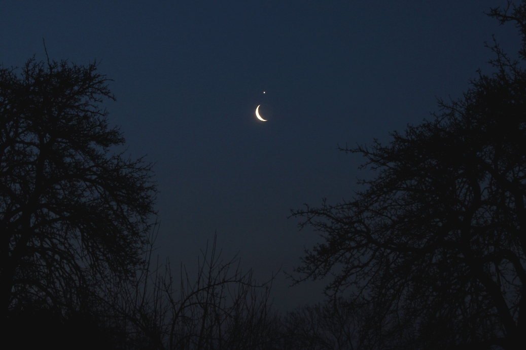 Dnešní konjunkce Venuše s Měsícem se vydařila. Oba objekty byly tak blízko, že se vešly na jeden snímek v SW ED100. Bližší info o technice na Astrofotkách.