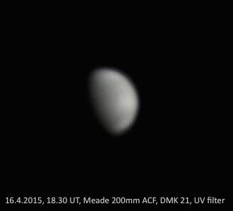 Venuše, filtry BUVUV, 20150416 17h25mUT, NWT254/1200, ASI120MM