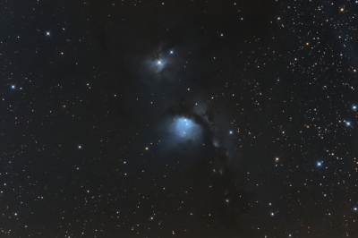 Samotná reflexní mlhovina je celkem snadná, ovšem celé její okolí je plné slabých H-alfa mlhovin a rozkládá se tam molekulární oblak prostupující takřka celým Orionem. Tedy v celém pozadí snímku je "něco" a odlišit to ještě od barevných gradientů ve snímku, které tam zanesla zaneřáděná obloha, vzdálené zdroje světla a podobně, byl dost těžký úkol. Tohle je tedy moje podání:
