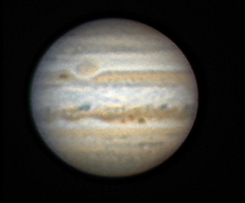 Tak sa mi ešte podarilo dopracovať sa k ďalšej, trochu viac pozerateľnej RG verzii snímku Jupitera. Snímok má stále veľa nedostatkov, ale verím, že časom to vypilujem a bude to ako tak ok. Na druhej strane, konečne sa náznak štruktúry vnútri červenej škvrny nestráca, ako v čiernebielom prevedení. Tak, na dnes odo mňa všetko ::):
