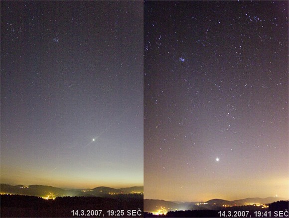 hroch napsal: Jak už tady někde MMys napsal, zvířetníkové světlo a Venuše byli včera docela slušnými zdroji světelného znečištění. Alespoň malá ukázka: