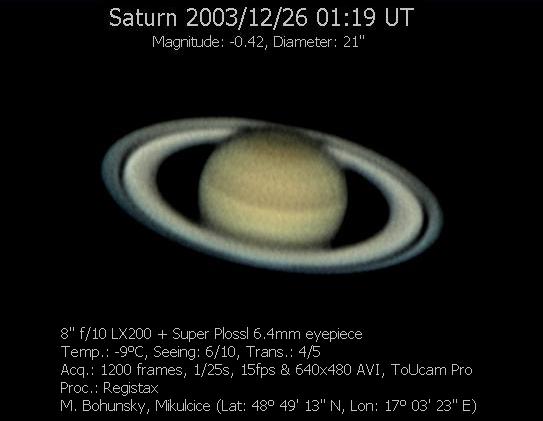 Včera 18.12.2003 (22:55 - 23:15 SEČ) jsem pozoroval Saturn. Použil jsem R 60/700