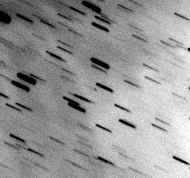 P/2014 X1 (Elenin), pozorováno dalekohledem Bootes-2 (0.6-m f/8 reflector + CCD) ve Španělsku 12. 12. 2014 mezi 19:15 - 19:50 SEČ, tedy cca půl dne po objevu komety. Cílem pozorování bylo potvrzení objevu a získání přesných astrometrických pozic, které byly použity pro výpočet a zpřesnění dráhy nově objevené komety. Ve finale sečteno 30 snímků, každý exponován 60sec, složeno na pohyb komety.