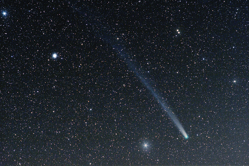 Tak jsem si začal hrát se snímky ze 135tky a docela mě to posadilo. Narozdíl od padesátky mi tam lezou krásně barvy a taky detaily. Mám ještě sadu kratších expozic, ale než z toho vydoluju něco použitelného, tak to bude teda fuška. Tady alespoň náhled, na co tu právě koukám, protože to je krásná kometa.