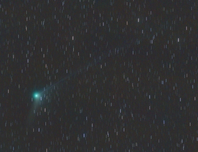 Také jsem to ráno zkoušel. Triedr se mi zamlžoval, takže vizuálně nic, montáž jsem špatně ustavil, kometu jsem našel až po více než půlhodinovém snažení, takže výsledek jen pár 30s. expozic, které jsem vyhodil. Ke konci se ještě začal zamlžovat objektiv, takže pokračování až bude fén ;D