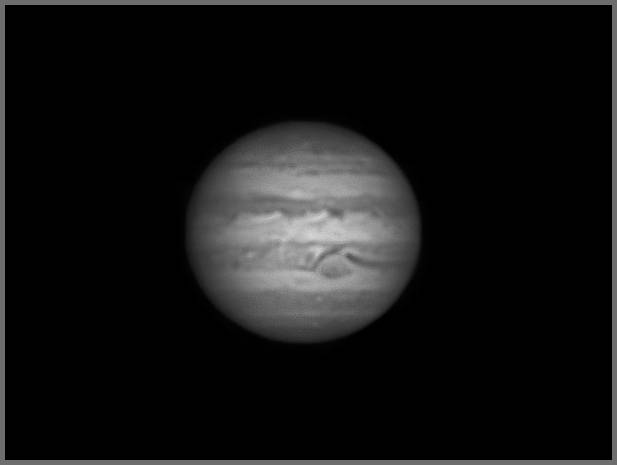 Co se týče vlastního pozorování, první dojem byl "hele, GRS" a hned potom "a proč je ale na severu?". Nepamatuju se, že bych kdy viděl v NTB tak velký a na první pohled zřetelný útvar. U ztmavení na jihu NTB poblíž západního kraje Jupiteru jsem hodně ujel s tvarem, byl to spíš kulatější objekt, tak tmavý, že jsem chvíli zkoumal jestli to není stín měsíce co byl poblíž. Příště vezmu tužku a papír od začátku...