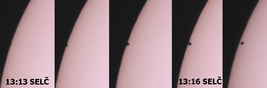 Ještě k tomu srovnání velikostí: vyšlo mi, že na pozadí slunečního kotouče má Merkur zhruba 2/3 průměru Země. Bylo tedy zároveň možné udělat si "reálné" porovnání titěrnosti Země vůči Slunci.
