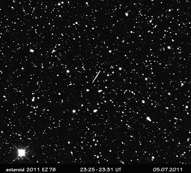 Pohyb asteoridu 2011 EZ 78 medzi hviezdami z 10. na 11. júla