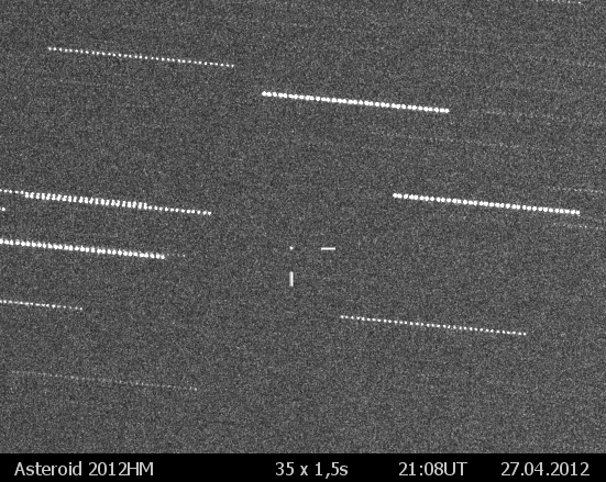 Jinak sem pridavam dalsi blizkozemni planetku, 2012 BT23, kterou se nam podarilo pomoci FRAMu zachytit. Jasnost v dobe snimani (26.1.2012) byla cca 18,5mag. Tato planetka byla trosku mimo od predpovezene pozice. Provedl jsem astrometrii, ktera zpresnila drahu planetky.