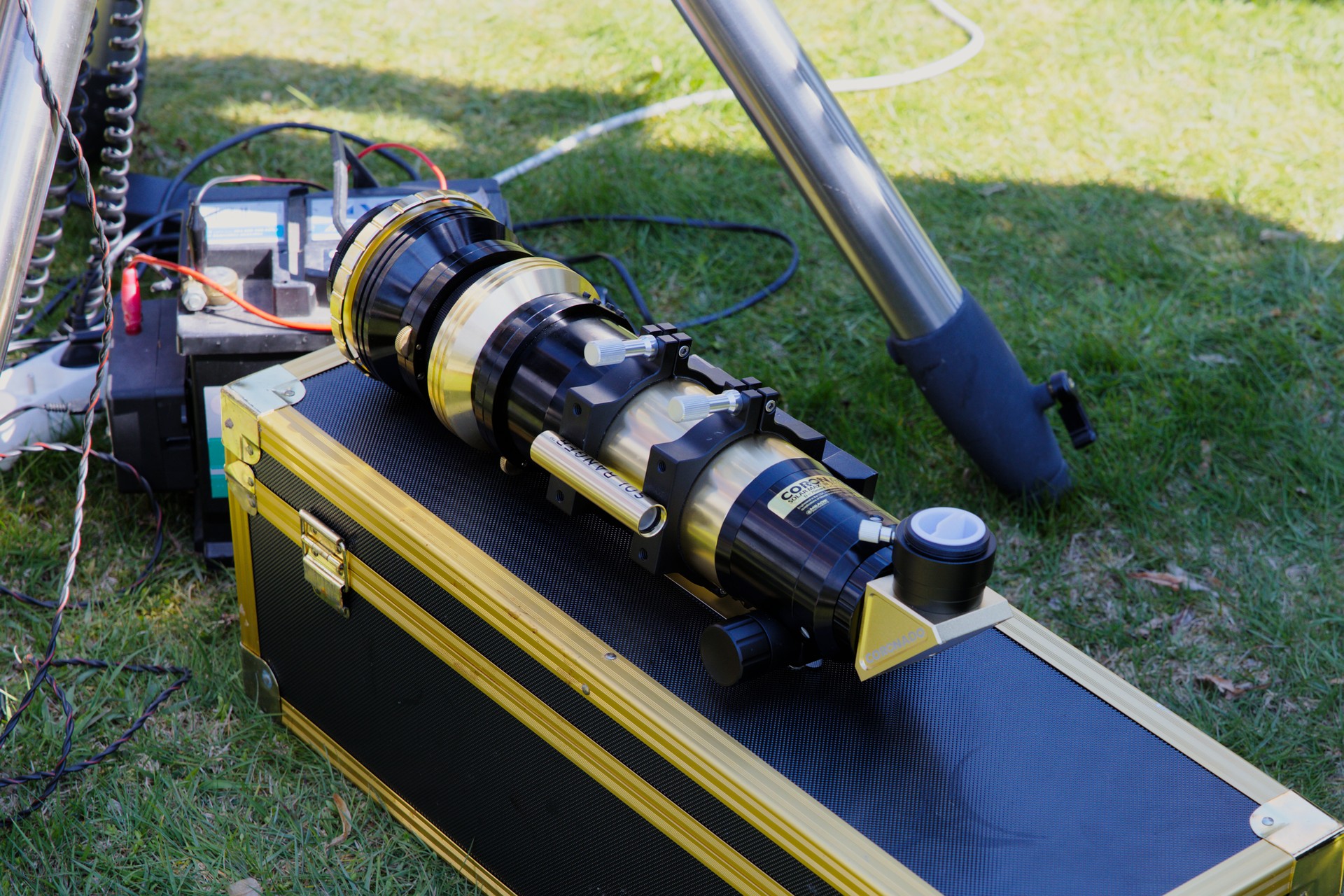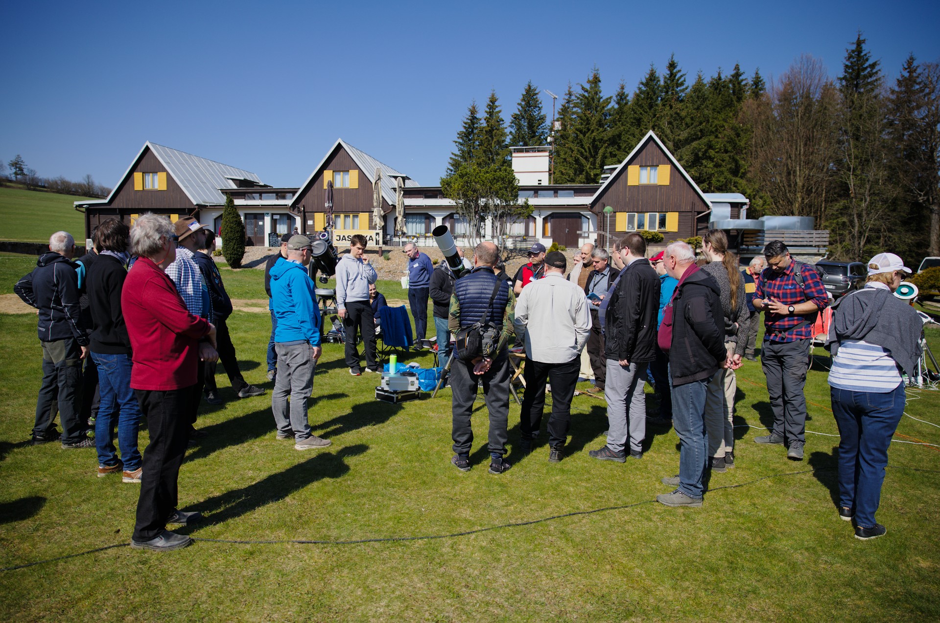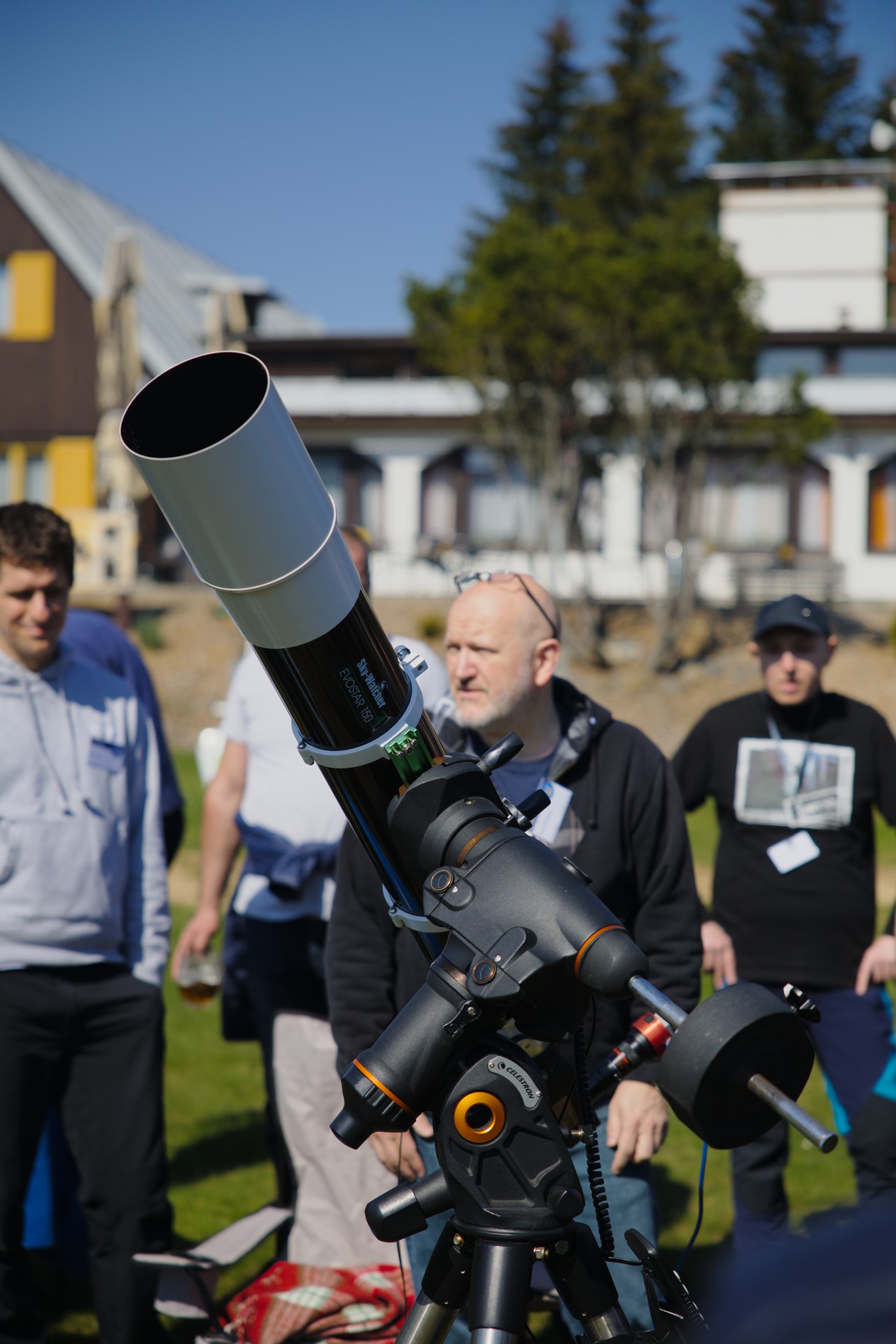 První část prohlídky dalekohledů. Prvních pár fotek je už z pátku, ale přiřadil jsem je k prohlídce, protože tam tematicky patří. Počasí bylo skvělé na pozorování Slunce, s focením techniky už to bylo horší...
