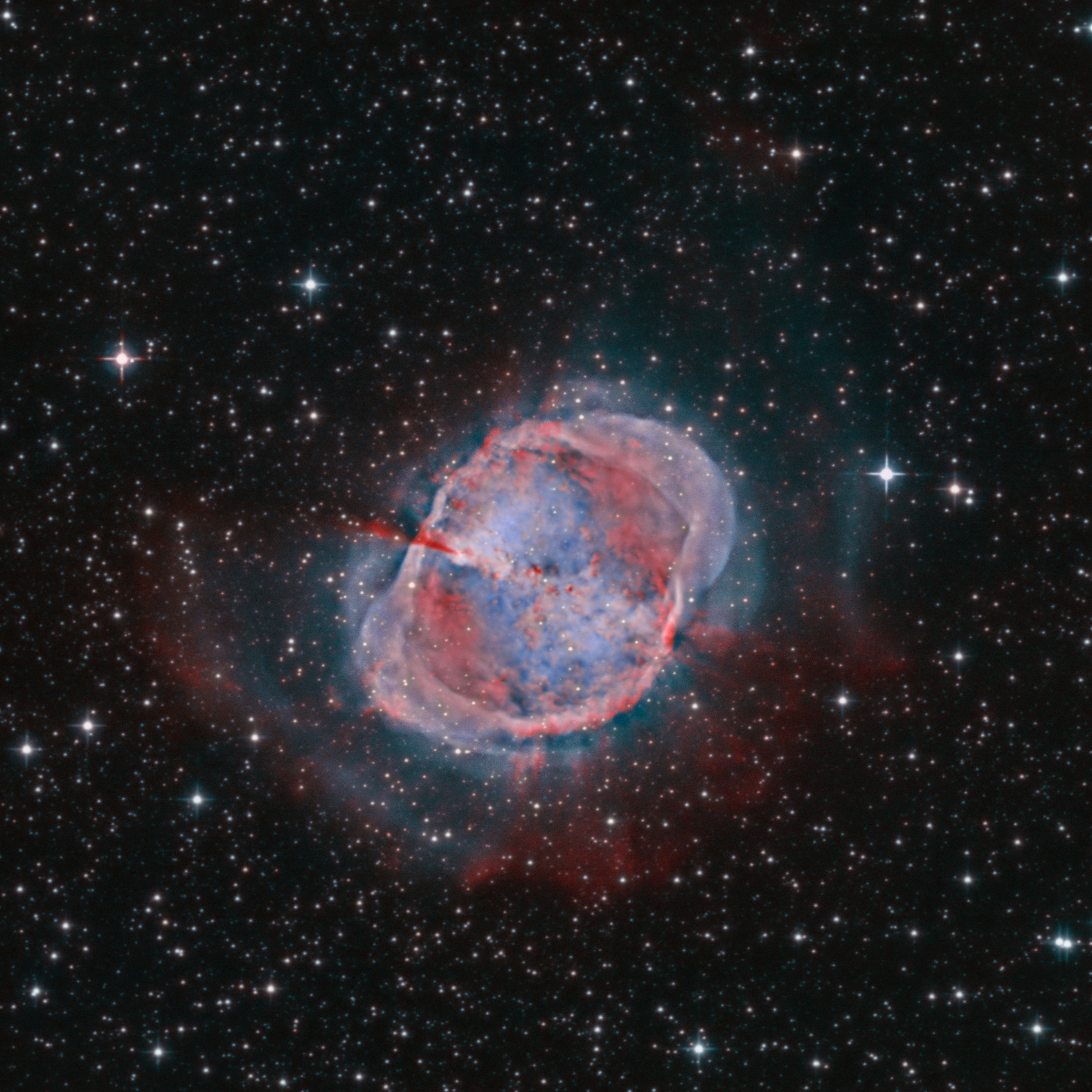 Ahoj, taky se připojím s jednou M27 nemodifikovanou DSLR. Tu chybějící červenou jsem tam doslova doloval i za cenu toho, že jsou hvězdy do oranžova.