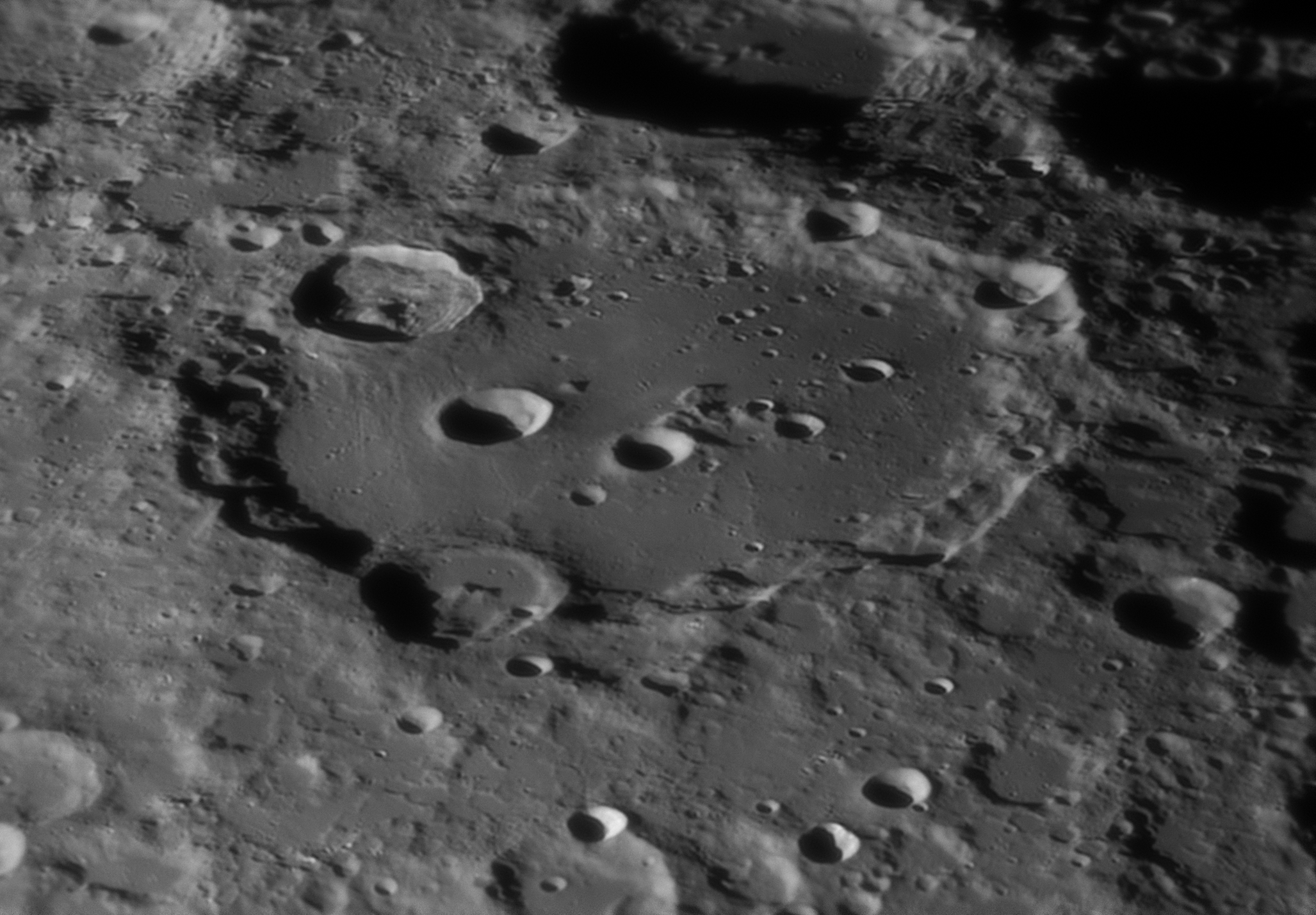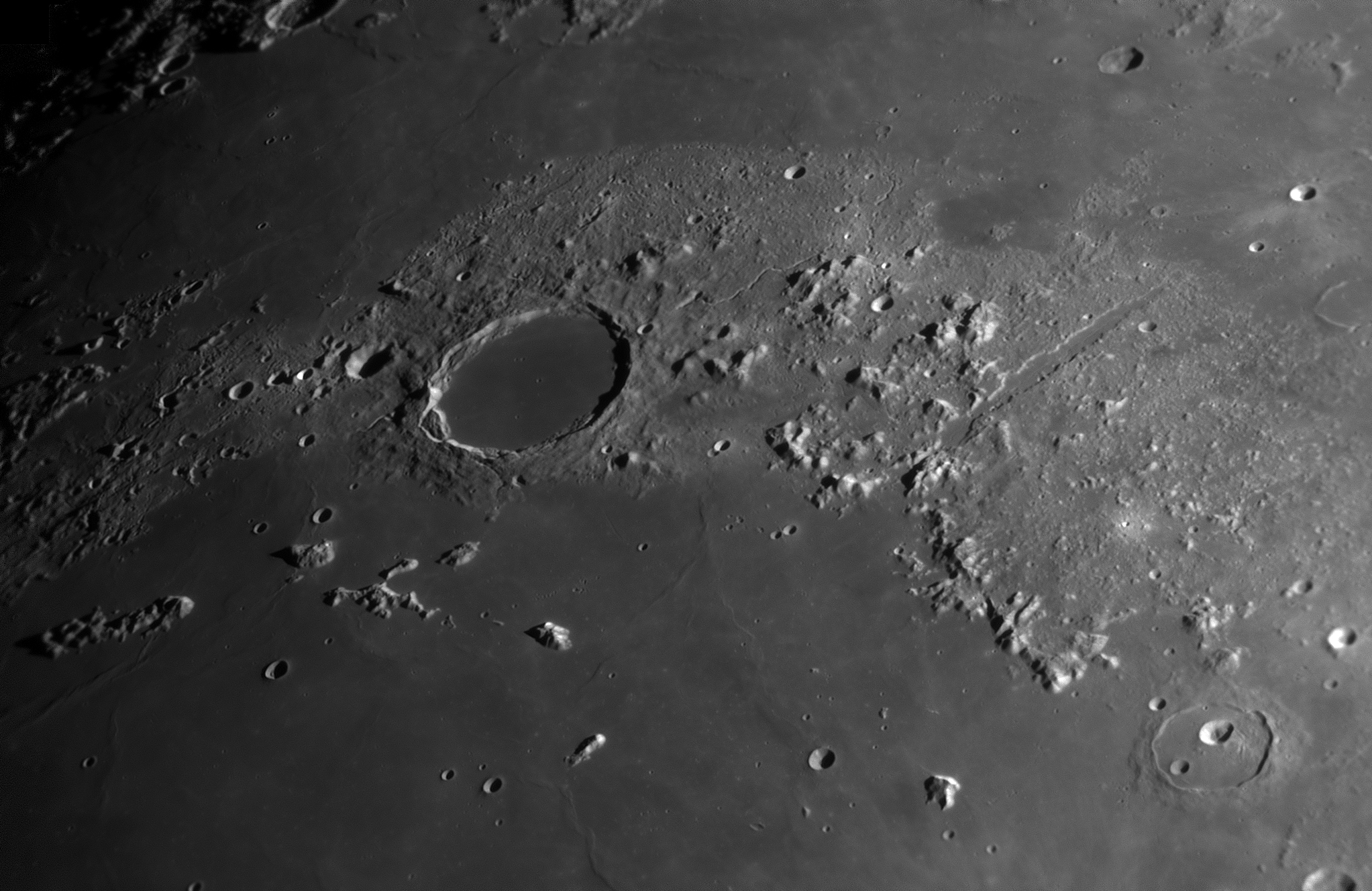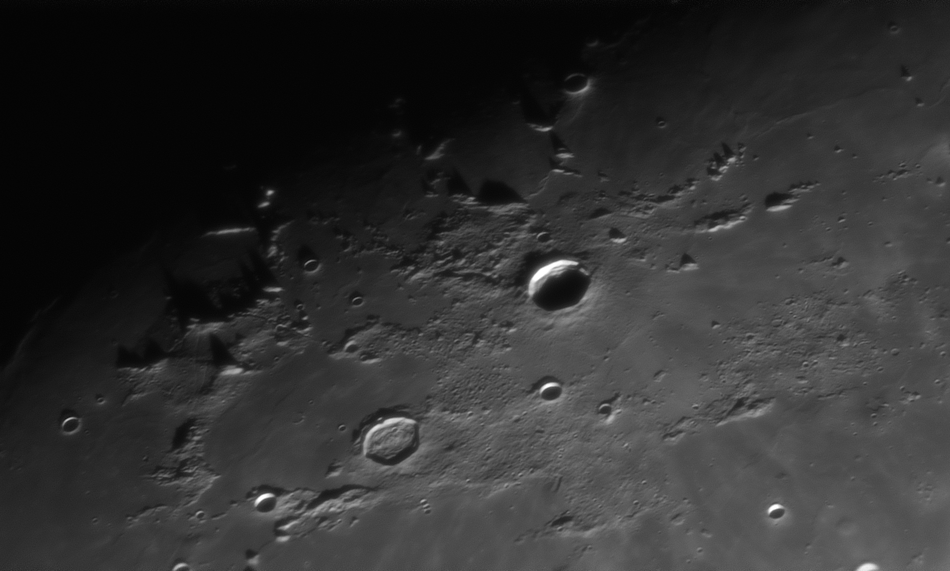 Na ohnisku 6400mm se obraz ani nedal zaostřit. Nakonec pomohla síla počtu expozic. Až na Plato s Vallis Alpes, který je v binu 2x2, je to foceno na bin1x1 s malými 2.315nm pixely.