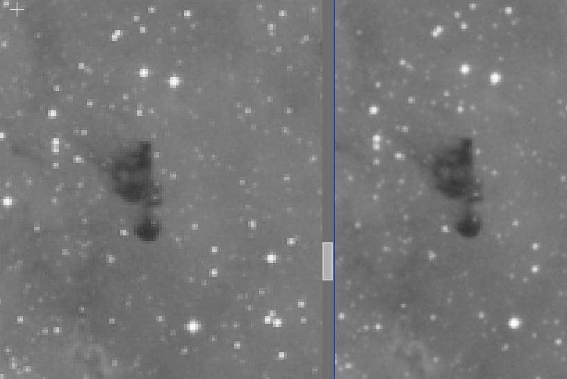 Jaký význam by měl u tak ostrého skla dělat nějaký bining? Já dělám naopak drizzle, aby hvězdy nevypady jako Tetris... Ta pravá půlka by se dala ještě i lehce doostřit... Je to Atik 460, pixely jsou 4.54 µm x 4.54 µmPsion píše:Neznám objektiv, kde hvězda zabírá méně než pixel, takže když uděláš bining 2x2 tak se hvězda dostane i na 2 pixely?